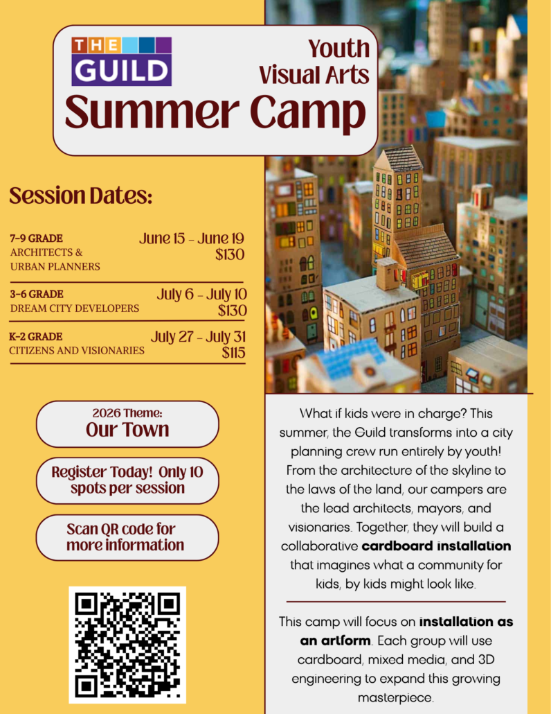 What if kids were in charge? This summer, the Guild transforms into a city planning crew run entirely by youth! From the architecture of the skyline to the laws of the land, our campers are the lead architects, mayors, and visionaries. Together, they will build a collaborative cardboard installation that imagines what a community for kids, by kids might look like.