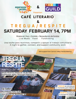 Please join our friends at Esperanza en Acción at the Guild (304 Division) on Saturday, February 14 from 7 – 9 pm for a night to gather, connect, and support community work. The event is free but we’re asking you to support Esperanza’s cultural programming with a contribution. There will be live music, food, and lots of fun. Congratulations to George Zuccolotto on his artwork in our Up Gallery.