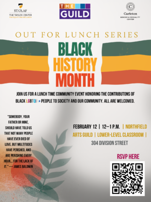 Please join @stolafcollege @carletoncollege & @booscapes (artist Boo McCaleb) tomorrow at the Guild for a community event honoring the contributions of Black LGBTQIA+ people. All are welcome. Guests will need to access the building through our Riverfront location.