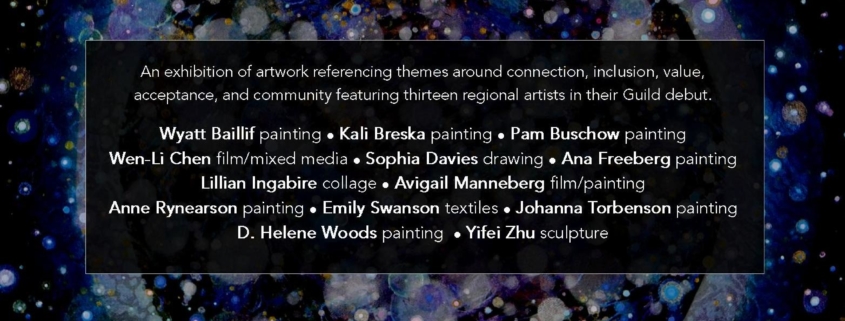 Experience ONLINE works by Wyatt Baillif painting • Kali Breska painting • Pam Buschow painting • Wen-Li Chen film/mixed media • Sophia Davies drawing • Ana Freeberg painting • Lillian Ingabire collage • Avigail Manneberg film/painting • Anne Rynearson painting • Emily Swanson textiles • Johanna Torbenson painting/drawing • D. Helene Woods painting • Yifei Zhu sculpture